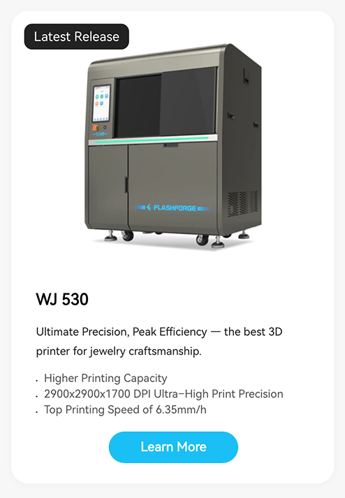 Its built-in 2K HD camera and Wi-Fi connectivity enable real-time remote monitoring, making it easier to manage production remotely and reduce downtime. Additionally, the high wax utilization rate minimizes material waste and lowers operating costs. These features make the WJ530 especially suitable for mid-to-large scale jewelry manufacturers or 3D printing service providers seeking speed, precision, and cost-effectiveness.